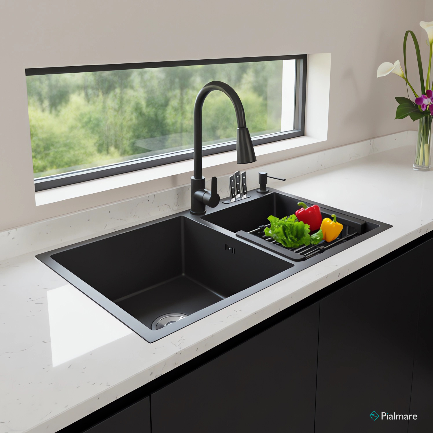 - Pileta de acero inoxidable SUS 304 color gris grafito.