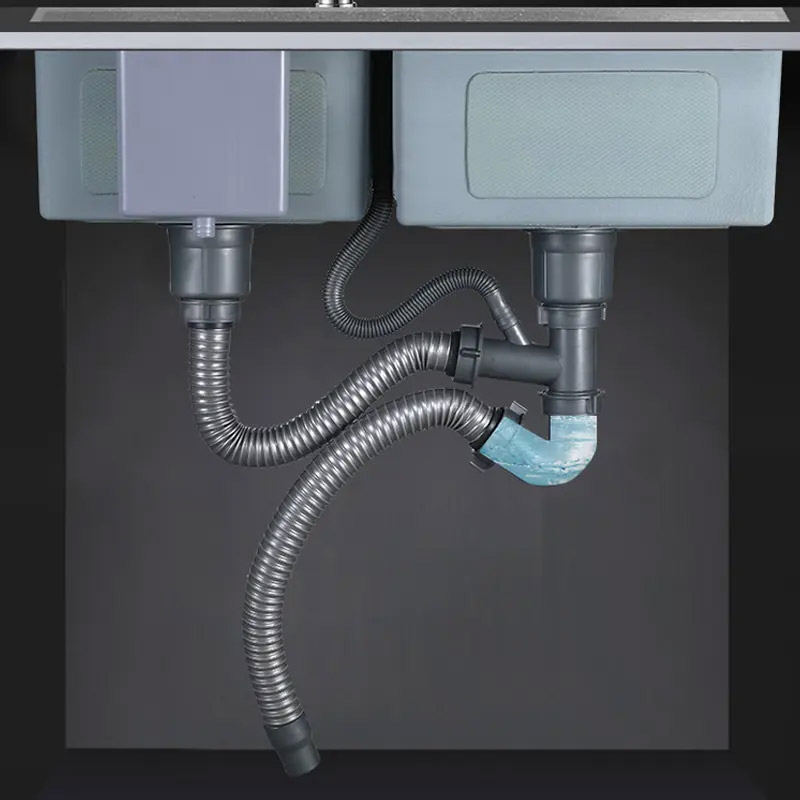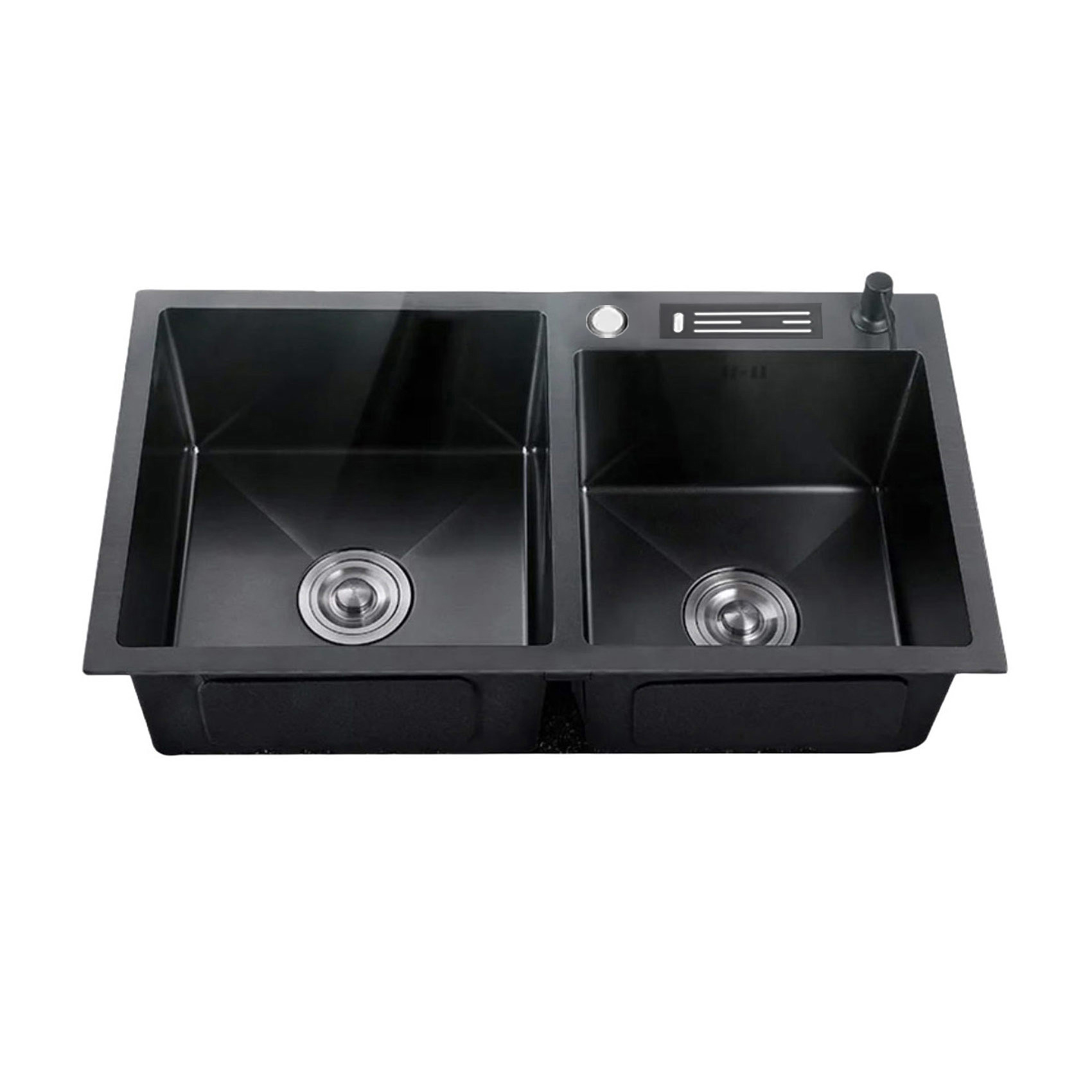 La pileta doble de acero inoxidable SUS 304, con unas dimensiones de 78 x 45 cm y un espesor de 2.0 + 0.6 mm, ofrece resistencia y calidad premium.