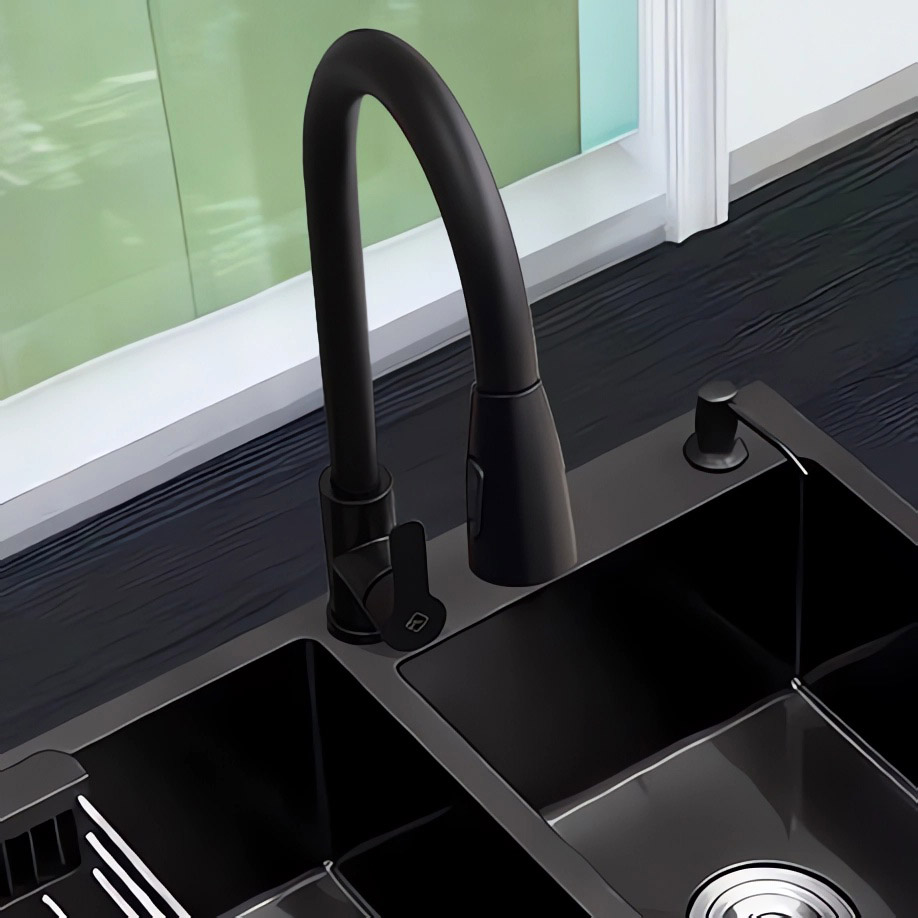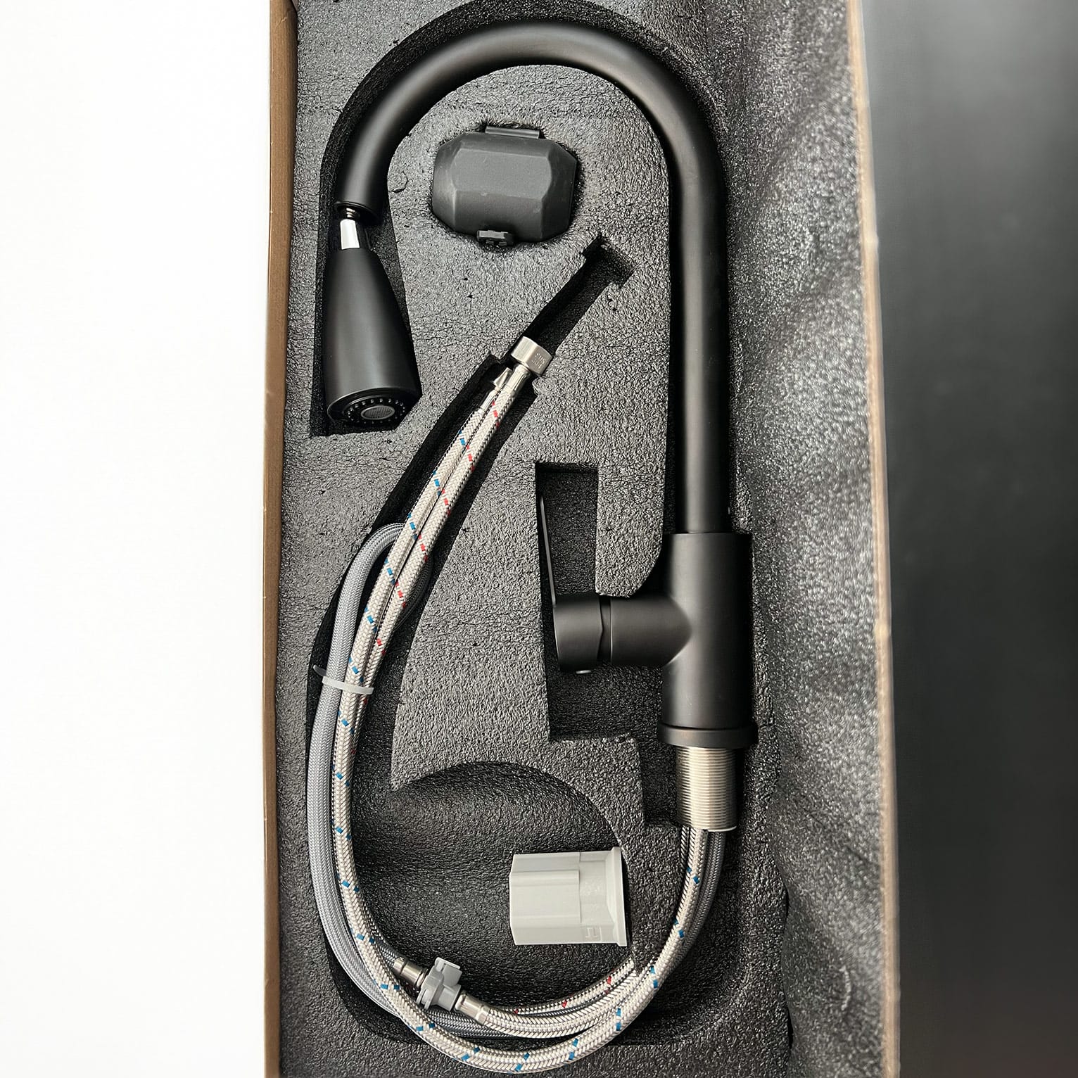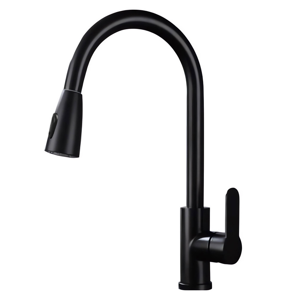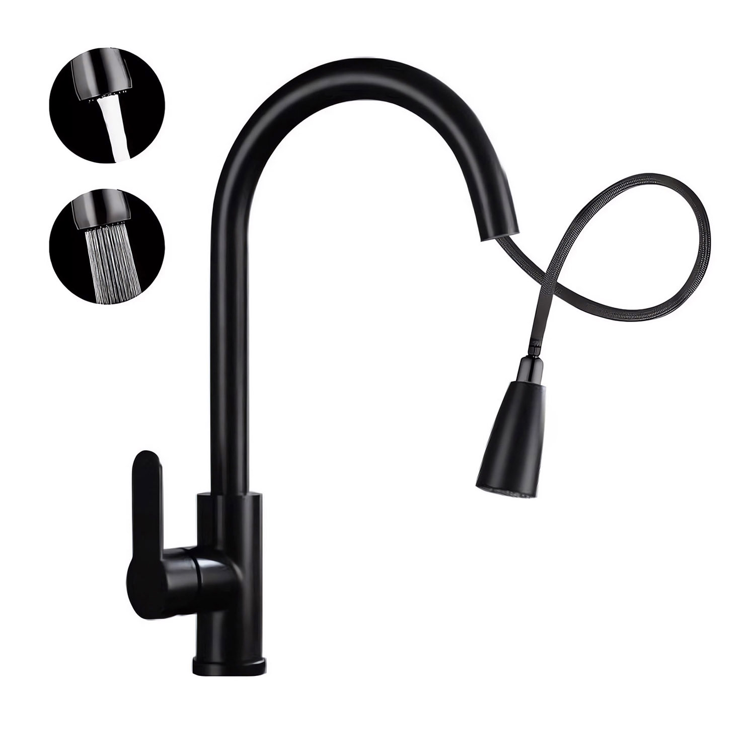 Monocomando mesada con pico extraíble, acero inoxidable 304 – negro mate