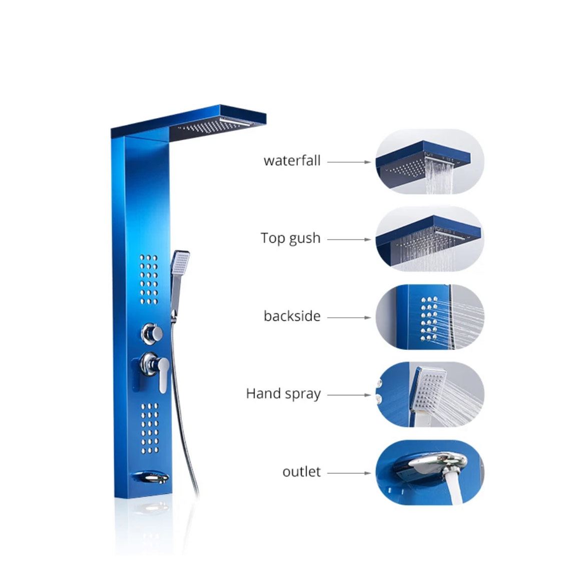 Panel Ducha acero inoxidable 304 – Azul mate