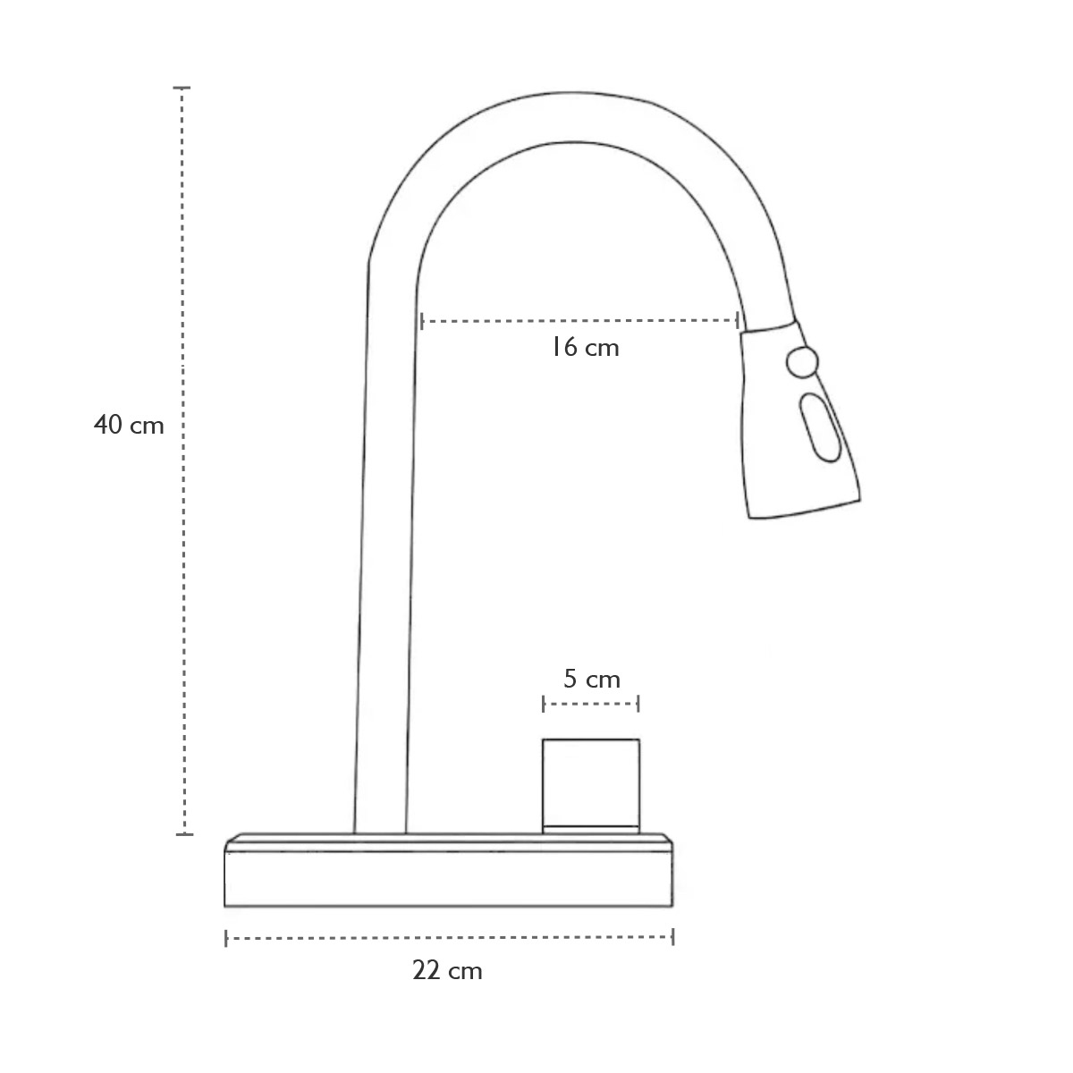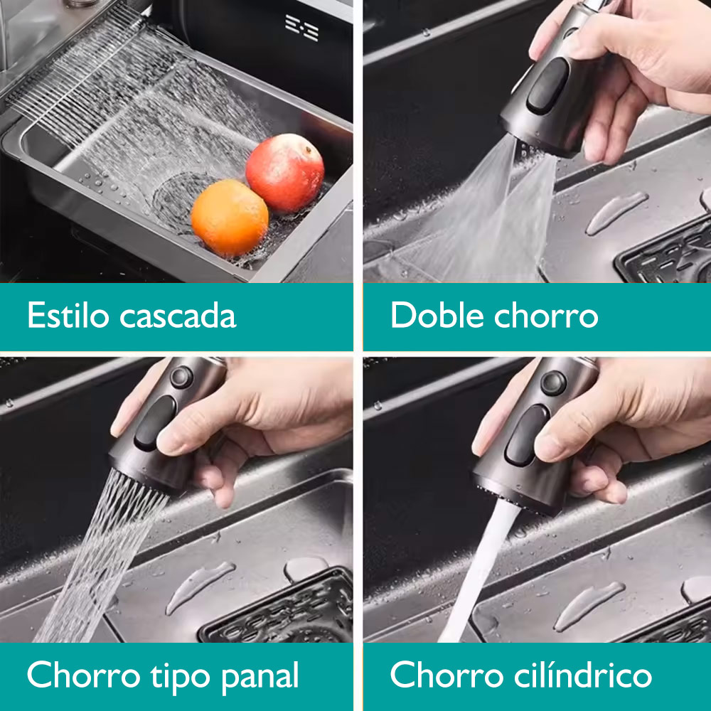 - Grifería pico extraíble, y uno tipo cascada (chorros horizontales).
